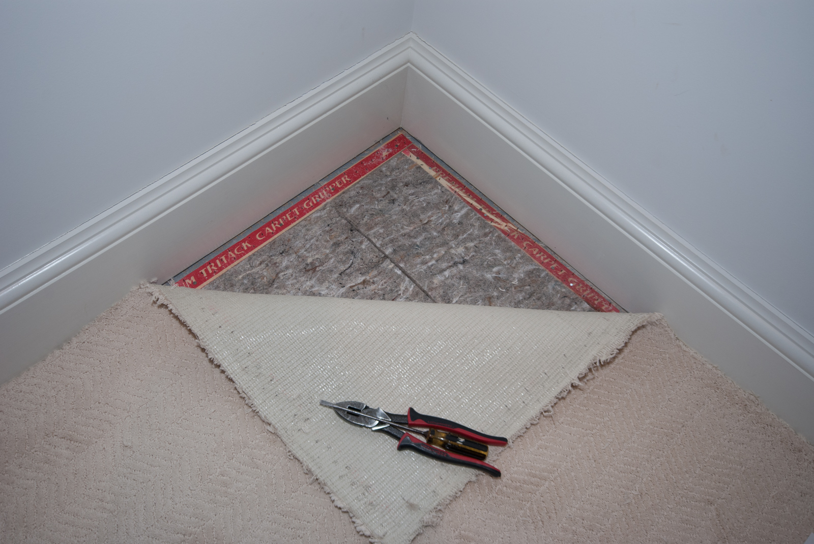 | 21 | A concern has been how to move heavy exercise equipment to the finished portion of the basement. In particular, how do we replace part of the wool carpeting with heavy-duty gym tile flooring? Here, I've pulled back a corner of the carpet to reveal nail strips, padding and (what I believe is) a DRIcore™-type subfloor. My plan is to replace a section of carpet & padding with Swisstrax™ flooring. | DSC_2713.jpg | 10/23/17 12:44 PM | 1600x1071px | 703kB | |