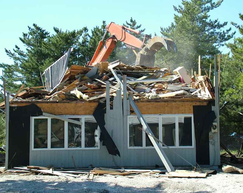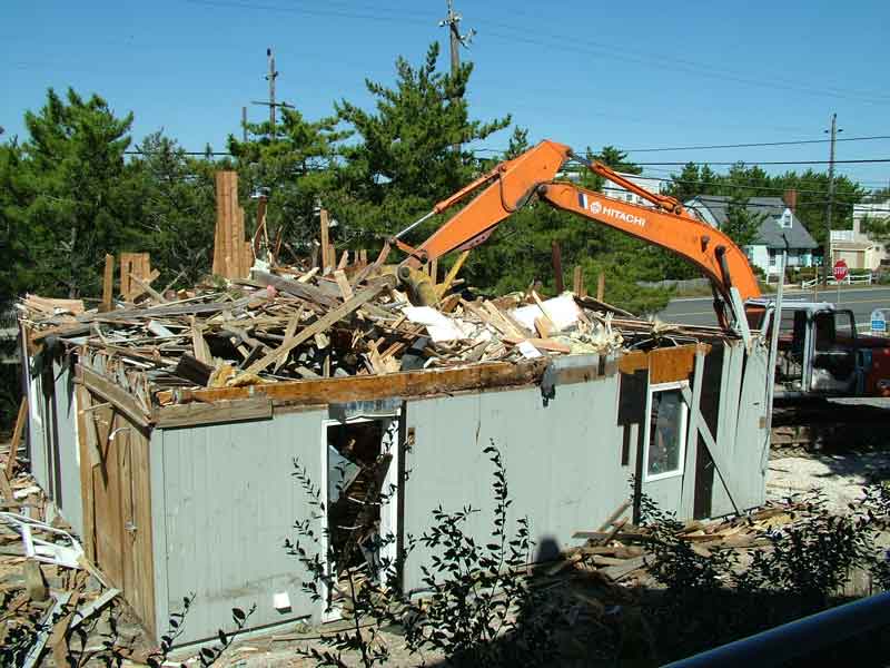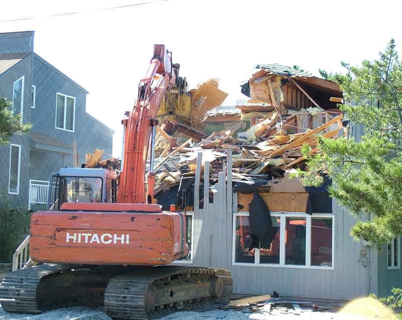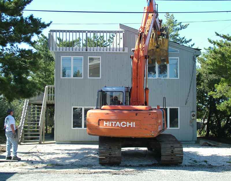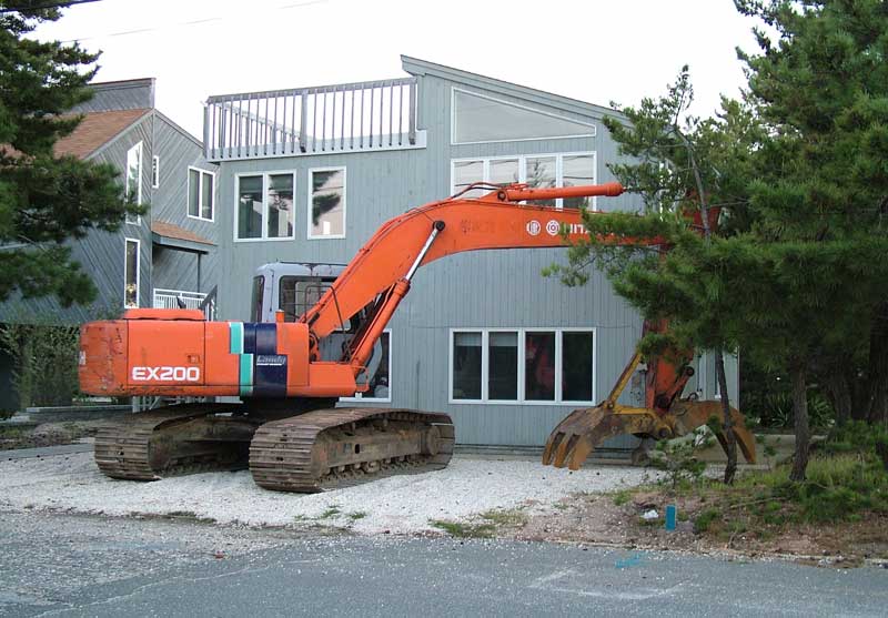 | Sept. 20. The shovel moves to the rear of the house to grab the deck. See also this video clip. | |
