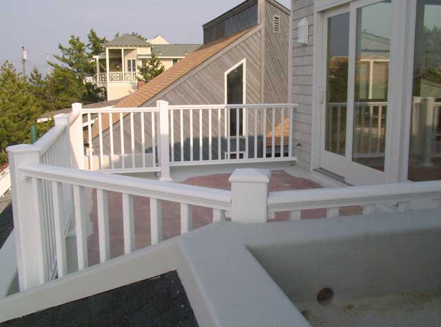 | July 20. Jeff added the perimeter rail to the roof deck. I kept the color dull (Trex) to help conceal it from street level. I plan to rebuild it later to push it further inward and hide it from the street. | |