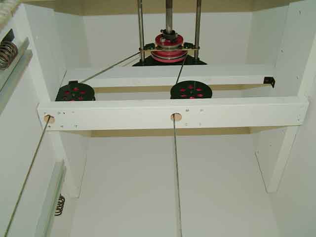 | May 30, 2004. The Miller Mfg. Silent Servant dumbwaiter that we visited. Photo shows the headspace mechanism (see Journal). | |